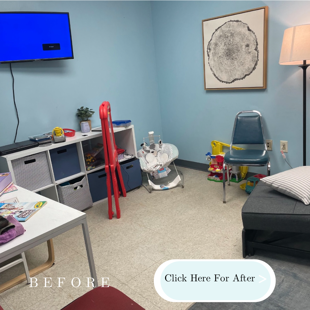 Each Lily Pad space is unique to the Social Services office it is installed in. We begin by meeting with the director of the office to learn the needs specific to their county. After that, a design plan is created, donations are procured, and an installation is scheduled.